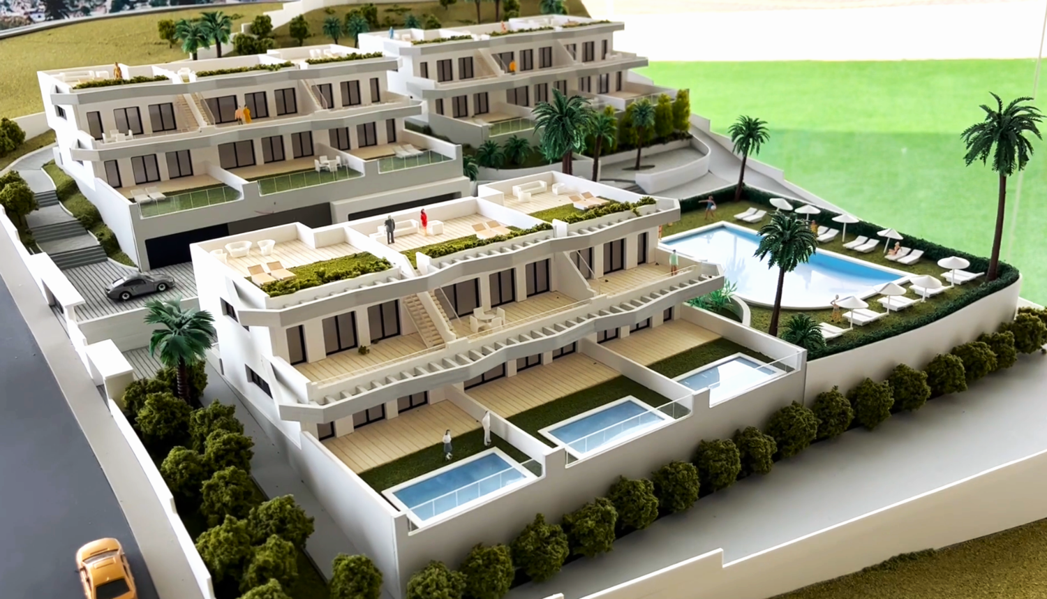 Deze zeer luxe Penthouses en begane grond appartementen met zeezicht en energielabel A worden gebouwd op een kleinschalige urbanisatie in Finestrat met slechts 18 woningen waarvan 9 Penthouses en 9 begane grond appartementen. Finestrat is een mooie rustige kustplaats met een fijn zandstrand en omgeven door bergen. Het ligt 3 km ten zuiden van het bruisende Benidorm. Het oude centrum van Finestrat is prachtig met smalle straten en schitterende kleurrijke huizen, heerlijk om doorheen te slenteren. Ondanks de rust is er veel te beleven en zijn er allerlei sportieve- en recreatieve activiteiten voor het hele gezin. Een golfbaan is op korte afstand bereikbaar. Het Themapark Terra Mitica en het waterpark Aqualandia liggen vlakbij.