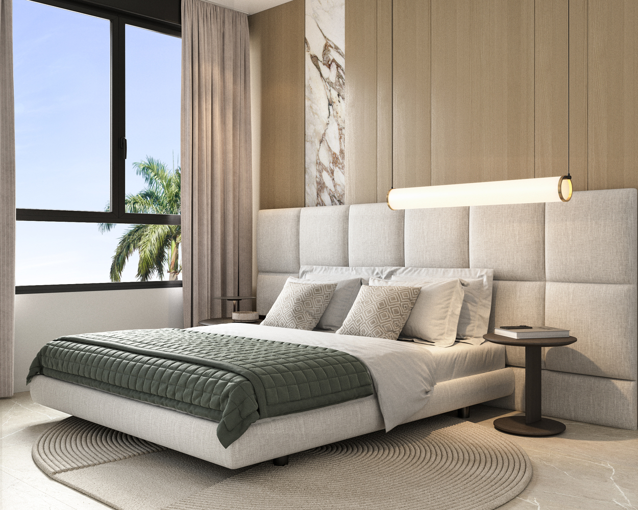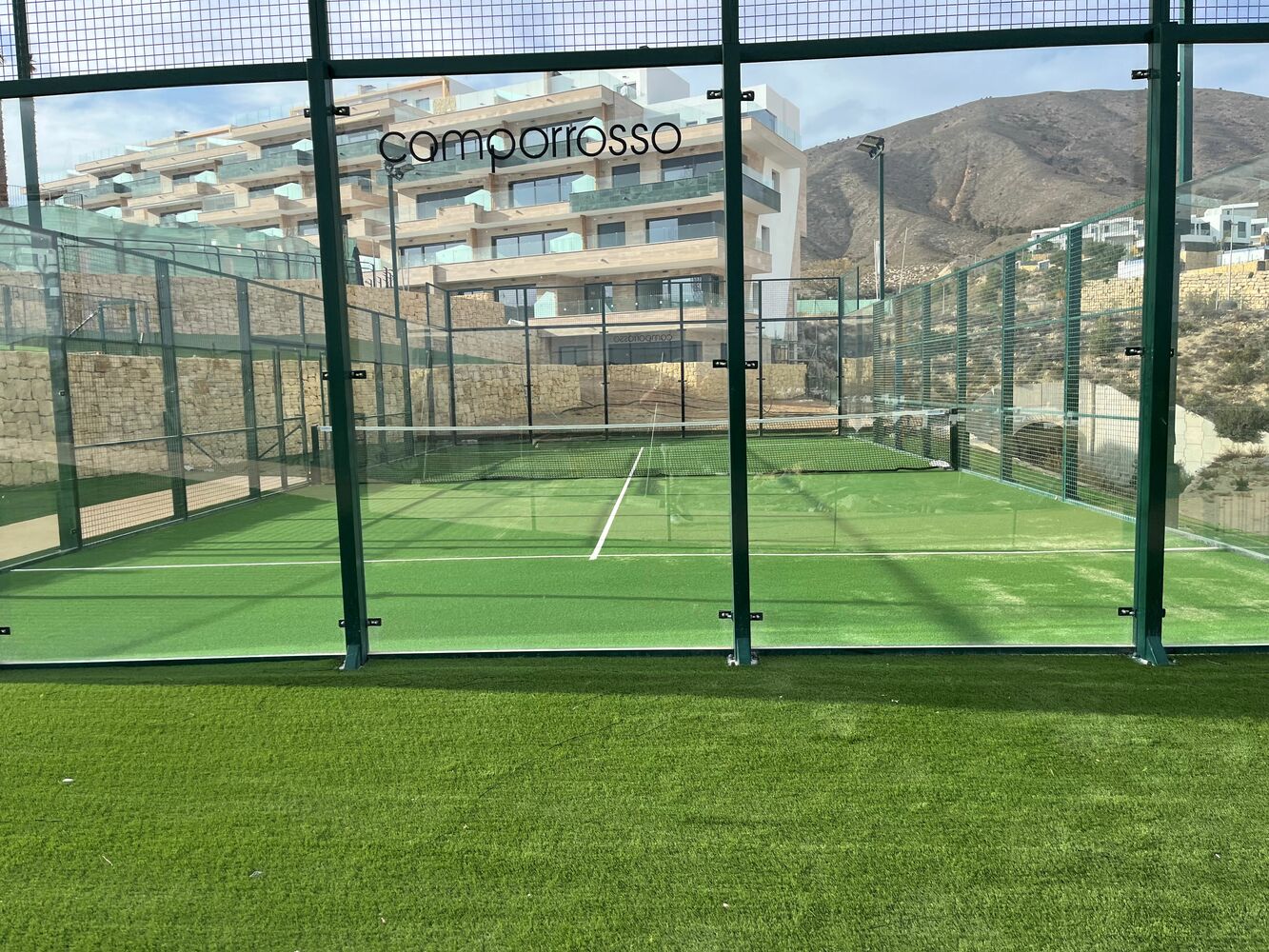 Prachtig gelegen zijn deze op de 3e verdieping zeer fraaie appartementen met een tuin en 2 of 3 slaapkamers, midden tussen de natuur en golfbaan met magisch uitzicht op de Skyline van Benidorm en de zee. De appartementen zijn in de breedte gebouwd met brede schuifpuien waardoor de lichtinval en het enorme zicht optimaal is. Vanuit de woonkamer heb je een fantastisch zeezicht. De appartementen zijn voorzien van een woonoppervlak van respectievelijk 75 m2 en 90 m2 en 2 of 3 slaapkamers, een aparte wasruimte en 2 badkamers met vloerverwarming waarvan 1 en suite. Aansluitend is er een tuin/terras van 52 m2 bij de 2 slaapkamer appartementen en 70 m2 bij de 3 slaapkamer appartementen. Bij deze woningen van topkwaliteit is de keukenapparatuur, het geïntegreerde aircosysteem en de elektrische rolluiken inclusief. De ondergrondse parkeergarage/carport bereikbaar met de lift geeft toegang tot een privé parkeerplaats voor 1 auto en aparte bergruimte. De architect heeft veel aandacht besteed aan de buitenruimte die opvalt door het gebruik van de grote rotsblokken die als afscheiding dienen, de fraaie beplanting en echt gras wat erg mooi is aangelegd en zeer uniek is. De gemeenschappelijke ruimte heeft een social room, een groot binnenzwembad, padelbanen, een gym, een kinderspeelplaats en een fantastische tuin waar u heerlijk kunt relaxen en gebruikt kunt maken van het grote zwembad.