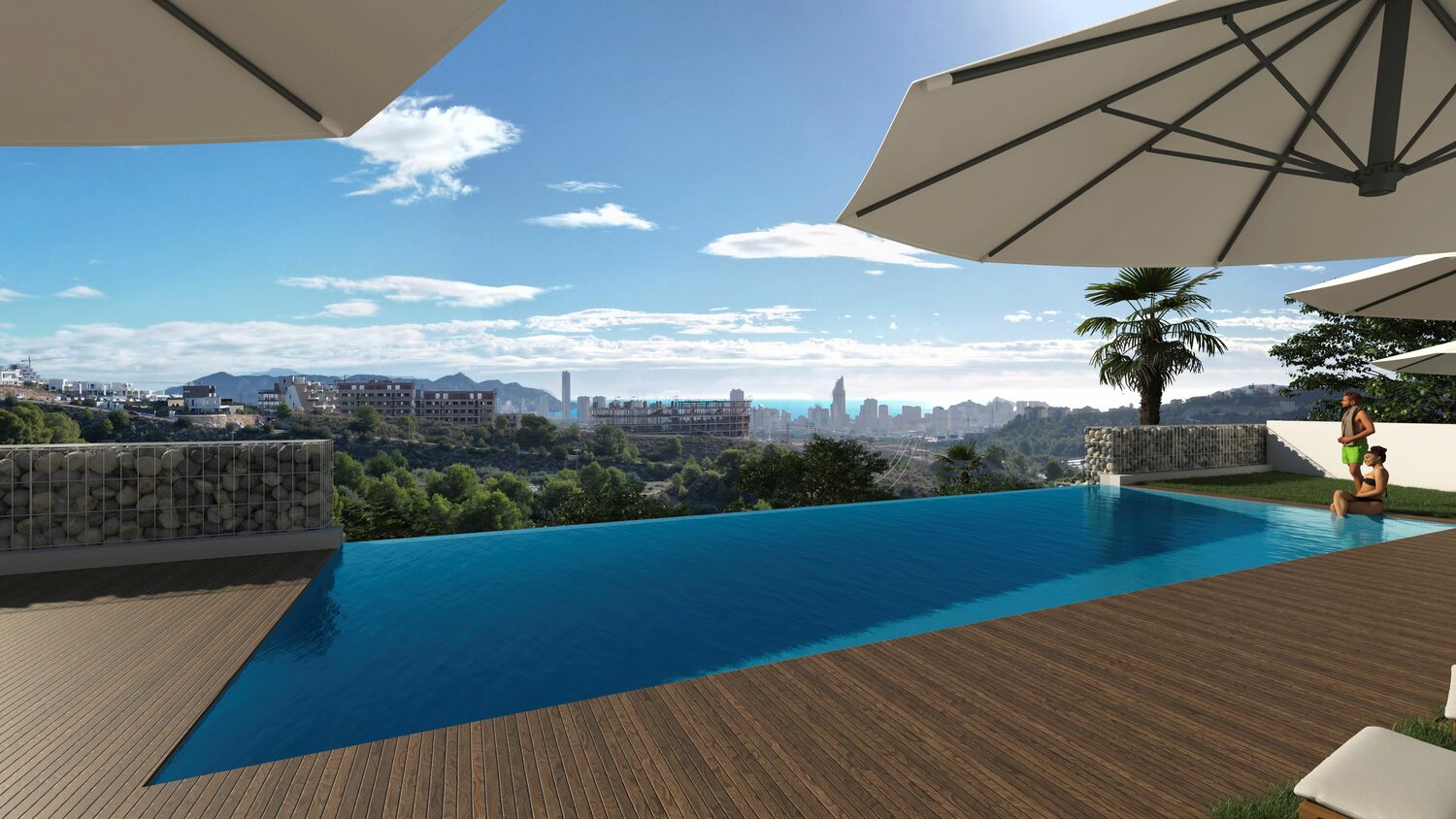 Deze Penthouses en appartementen in Finestrat zijn trapsgewijs gebouwd op een kleine urbanisatie en geven een fraai uitzicht over de skyline van Benidorm en de zee. Finestrat is een mooie rustige kustplaats met een fijn zandstrand en omgeven door bergen. Het ligt 3 km ten zuiden van het bruisende Benidorm. Het oude centrum van Finestrat is prachtig met smalle straten en schitterende kleurrijke huizen, heerlijk om doorheen te slenteren. Ondanks de rust is er veel te beleven en zijn er allerlei sportieve- en recreatieve activiteiten voor het hele gezin. De golfbaan “Puig Campana” ligt op 1,5 km afstand. Het Themapark Terra Mitica en het waterpark Aqualandia liggen vlakbij. Een winkelcentrum en horecagelegenheden zijn gelegen op 3 km afstand. De afstand tot het ziekenhuis is 6 km.