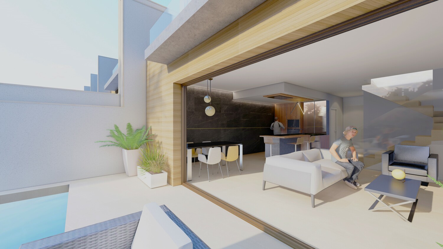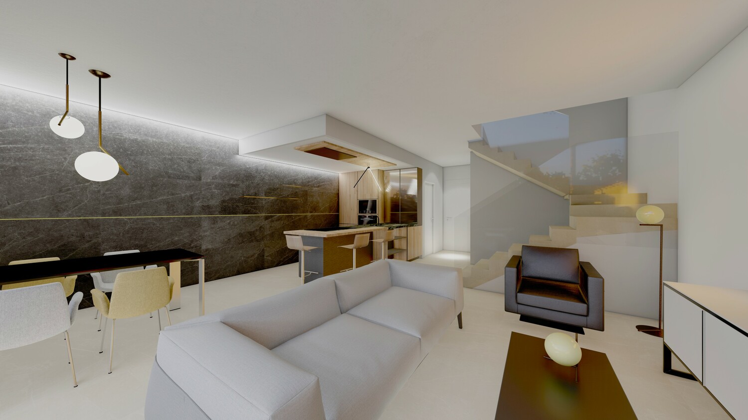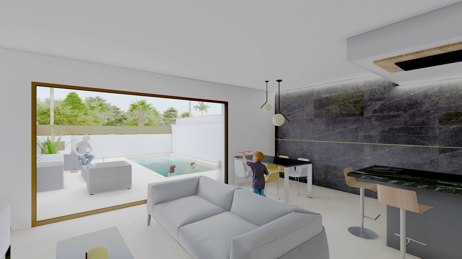 Deze, op golfresort gelegen vrijstaande Villa’s met 3 - 4 slaapkamers en 4 badkamers waarvan 2 en-suite op de 1e verdieping zijn van een opvallend mooi design met leuke hoogteverschillen en afgewerkt in prachtige kleurstellingen. De woningen met een oppervlakte van 198 m2 zijn voorzien van een woonkamer van 42 m2 met een open keuken welke een gezellig kookeiland met bar heeft, vloerverwarming in de badkamers, een apart gastentoilet en de gehele woning heeft een geïntegreerd airco systeem. Erg mooi detail, naast de betegelde muur in de woonkamer, zijn de grote schuifpuien welke volledig open kunnen doordat ze verzinken in de muur. Keukenapparatuur is bij deze woningen inclusief en is van een hoge kwaliteit. Daarnaast is er nog een basement van 58 m2 met grote schuifpuien waardoor er een mooie lichtinval is. In het basement is een badkamer gebouwd en daarnaast is er nog de mogelijkheid voor 1 of meerdere slaapkamers, sauna, gym of een complete studio. Rondom is een volledig aangelegde tuin/terras van 265 m2 met palmbomen. De 1e verdieping heeft zowel aan de voor- als aan de achterkant een balkon. Uniek aan deze Villa’s is wel het verwarmde infitiy pool. Onder het terras is een overdekte parking gecreëerd. Een solarium is bij deze woningen een optie en doordat deze Villa’s hoger liggen dan de half vrijstaande- en geschakelde Villa’s, is het uitzicht prachtig, zowel op de golfbaan als de bergen in de omgeving.